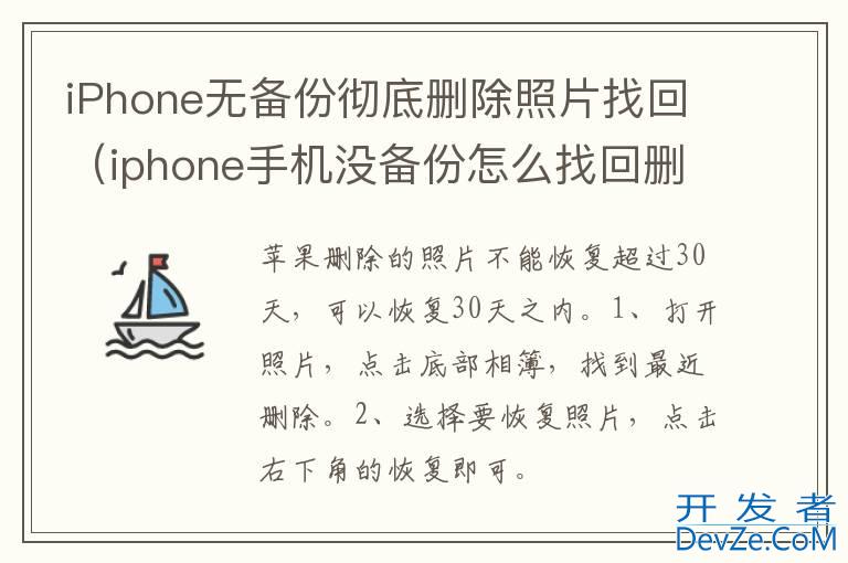 品牌型号:iPhone13 pro 系统:IOS15.4以iPhone13 pro为例,iPhone删除的照片不能恢复超过30天,可以恢复30天之内。分为2步,具体步骤如下:1进入照片最近删除打开照片