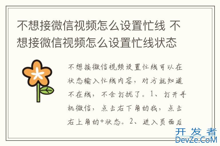 品牌型号:iPhone13 pro 系统:IOS15.4.1 软件版本:微信8.0.20以微信8.0.20为例,不想接微信视频设置忙线可以在状态输入忙线内容,对方就知道不在线,不会打扰了。分为3步,具