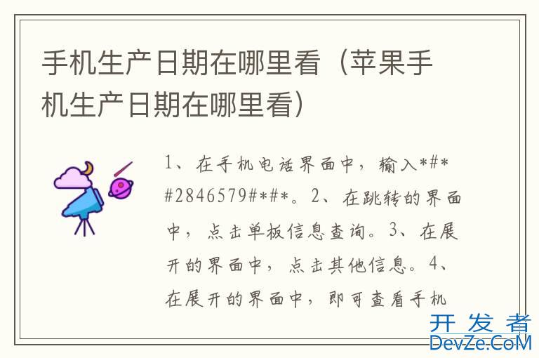 品牌型号:华为p50 系统:HarmonyOS 2.0.0查看手机生产日期需要在手机工程菜单中,即可查看手机生产日期。以手机华为p50为例,查看手机生产日期的步骤分为4步,具体操作如下:开发者_如何学