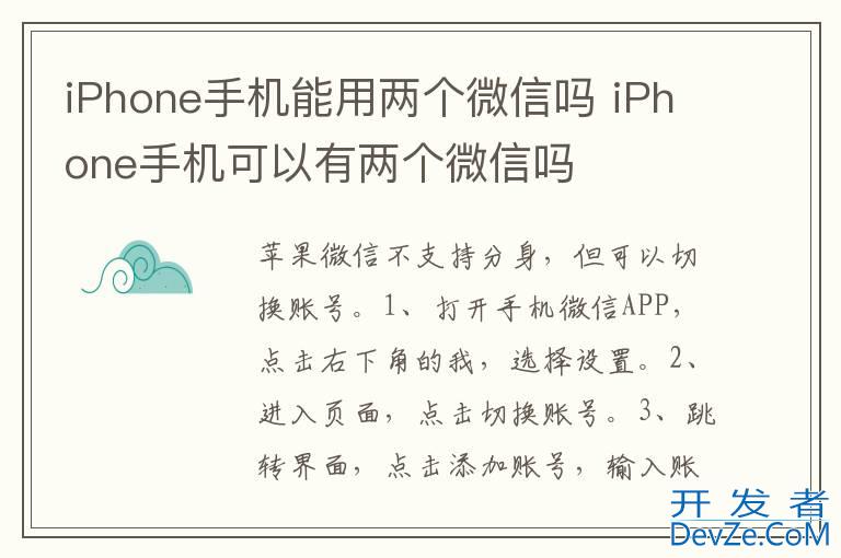品牌型号:iPhone13 pro 系统:IOS15.4.1 软件版本:微信8.0.20以iPhone13 pro为例,iPhone微信不支持分身,但可以切换账号。分为3步,具体步骤如下:1进入微信我