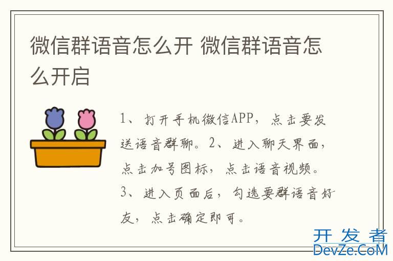 品牌型号:iPhone13 pro 系统:IOS15.4.1 软件版本:微信8.0.20以微信8.0.20为例,微信群语音可以进入聊天界面发起语音视频。分为3步,具体步骤如下:开发者_如何学编程 1
