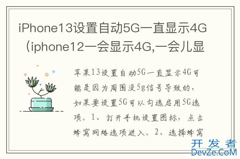 品牌型号:iPhone13 pro 系统:IOS15.3以iPhone13 pro为例,iPhone13设置自动5G一直显示4G可能是因为周围没5g信号导致的,如果要设置5G可以勾选启用5G选项。分为