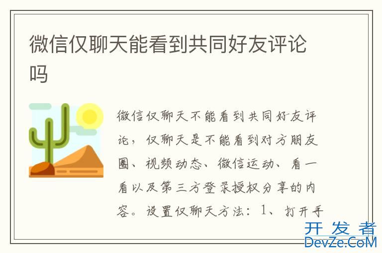 品牌型号:iPhone13 pro 系统:IOS15.4.1 软件版本:微信8.0.20以微信8.0.20为例,微信仅聊天不能看到共同好友评论,仅聊天是不能看到对方朋友圈、视频动态、微信运动、看一看以