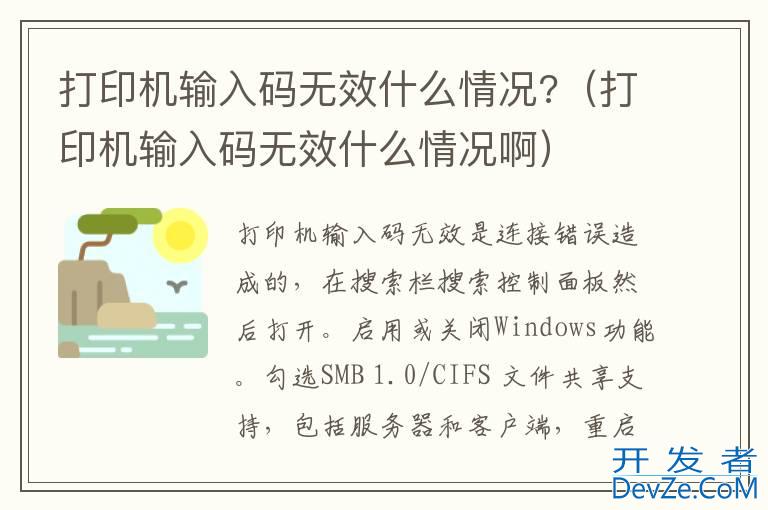 品牌型号:惠普打印机 系统:DJ 4825打印机输入码无效是连接开发者_开发问答错误造成的,在搜索栏搜索控制面板然后打开。启用或关闭Windows功能。勾选SMB 1.0/CIFS 文件共享支持,包括