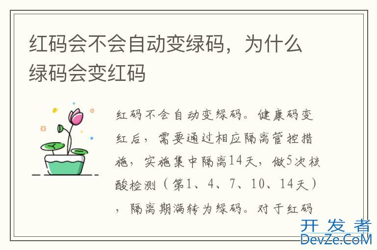 品牌型号:iPhone13 pro pro 系统:IOS15.4 软件版本:微信8.0.22红码不会自动变绿码。健康码变红后,需要通过相应隔开发者_运维问答离管控措施,实施集中隔离14天,做5次核酸检