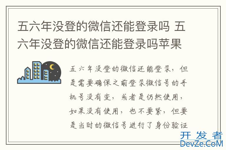 品牌型号:iPhone13 pro pro 系统:iOS 16.0 软件版本:微信8.0.28五六年没登的微信还能登录,但是需要确保之前登录微信号的手机号没有变,或者是仍然使用,如果没有使用,也不要紧