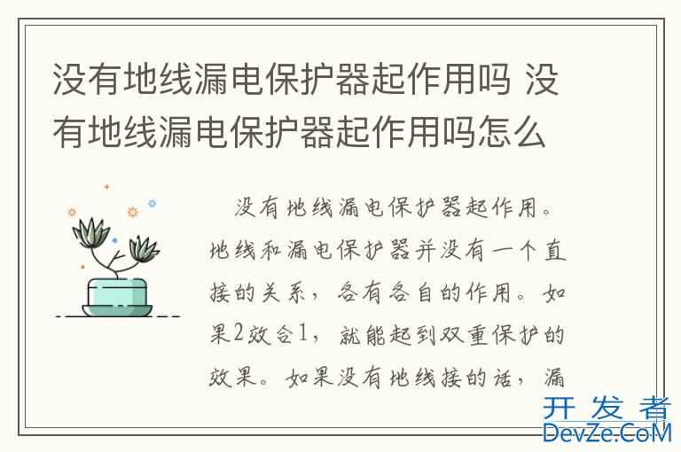 开发者_开发百科品牌型号:施耐德漏电保护器 系统:EA9RN2C6330CAR没有地线漏电保护器起作用。地线和漏电保护器并没有一个直接的关系,各有各自的作用。如果2效合1,就能起到双重保护的效果。如果