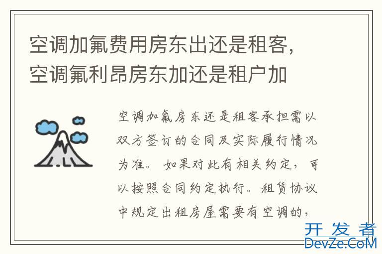 品牌型号:美的空调 系统:KFR-35GW/N8XHC1空调加氟房东还是租客承担需以双方签订的合同及实际履行情况为准。 如果对此有相关约定,可以按照合同约定执行。租赁协议中规定出租房屋需要有空调的,由