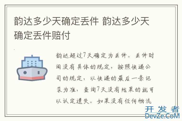 品牌型号:iPhone13 pro pro 系统:iOS 16.0韵达超过7天确定为丢件。丢件时间没有具体的规定,按照快递公司的规定,以快递的最后一条记录为准,查询7天没有结果的就可以认定遗失。以下是