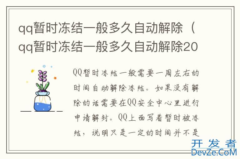 品牌型号:iPhone13 pro pro 系统:iOS 15.6 软件版本:QQ8.9.5QQ暂时冻结一般需要一周左右的时间自动解除冻结。如果没有解除的话需要在QQ安全中心里进行申请解封。QQ上面写