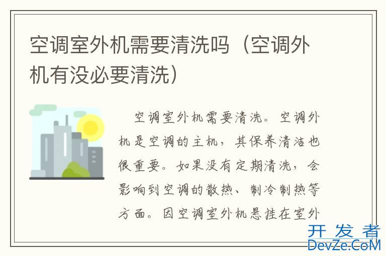 品牌型号:美的空调 系统:KFR-51LW/N8MJC3空调室外机需要清洗。空调外机是空调的主机,其保养清洁也很重要。如果没有定期清洗,会影响到空调的散热、制冷制热等方面。因空调室外机悬挂在室外,最好