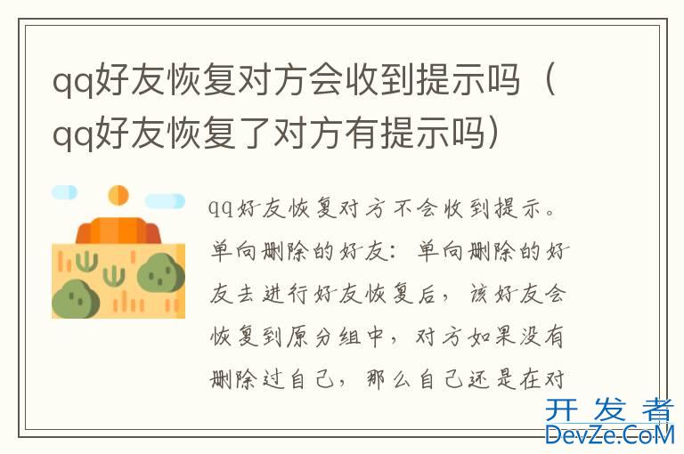 品牌型号:iPhone13 pro pro 系统:iOS 15.6.1 软件版本:QQ8.9.8开发者_运维技巧qq好友恢复对方不会收到提示。单向删除的好友:单向删除的好友去进行好友恢复后,该好友会恢