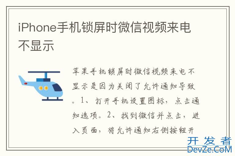 品牌型号:iPhone13 pro 系统:IOS15.4以iPhone13 pro为例,iPhone手机锁屏时微信视频来电不显示是因为关闭了允许通知导致。分为2步,具体步骤如下:开发者_运维百科