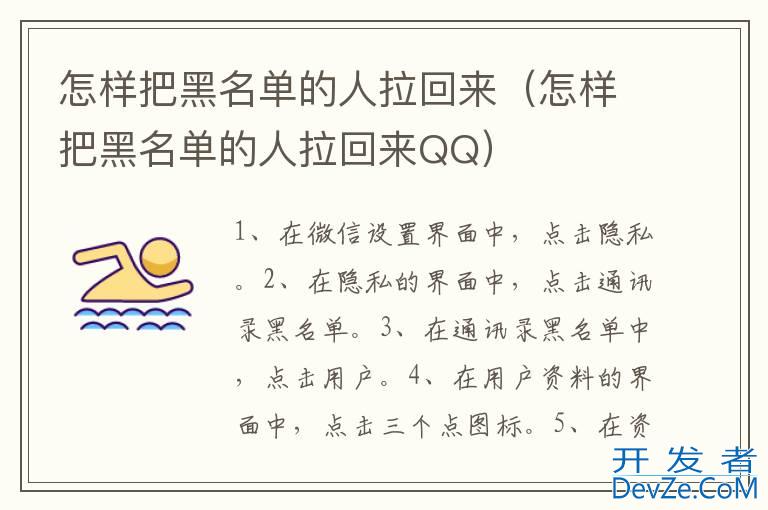 品牌型号:vivos9 系统:OriginOS1.0 软件版本:微信8.0.1开发者_StackOverflow中文版6微信把黑名单的人拉回来需要在微信隐私设置中,选择用户并取消加入黑名单即可。以手机