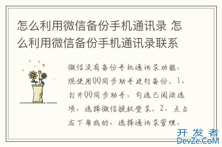 品牌型号:iPhone13 pro 系统:IOS15.4.1 软件版本:QQ同步助手8.0.7以QQ同步助手8.0.7为例,微信没有备份手机通讯录功能,现使用QQ同步助手进行备份。分为2步,具体步骤如