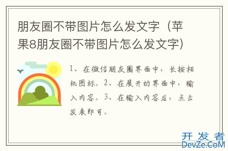 品牌型号:华为p40 系统:HarmonyOS 2.0.0 软件版本:微信8.0.18朋友圈不带图片发文字需要在朋友圈界面中,长按相机图标并发表文字即可。以手机华为p40为例,朋友圈不带图片发文字的步