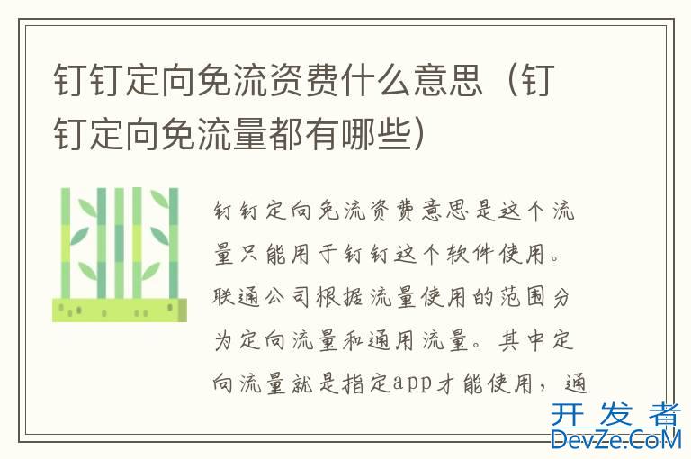 品牌型号:iPhone13 pro pro 系统:IOS15.开发者_JAVA百科5 软件版本:钉钉6.5.25钉钉定向免流资费意思是这个流量只能用于钉钉这个软件使用。联通公司根据流量使用的范围分为定