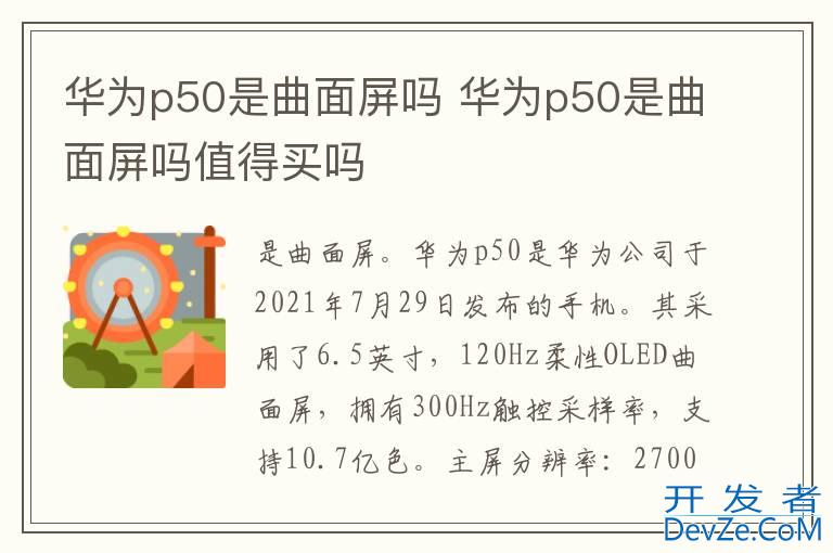 品牌型号:HUAWEI P50 系统:HarmonyOS 2华为p50是曲面屏。华为p50是华为公司于2021开发者_C百科年7月29日发布的手机。其采用了6.5英寸,120Hz柔性OLED曲面屏,拥