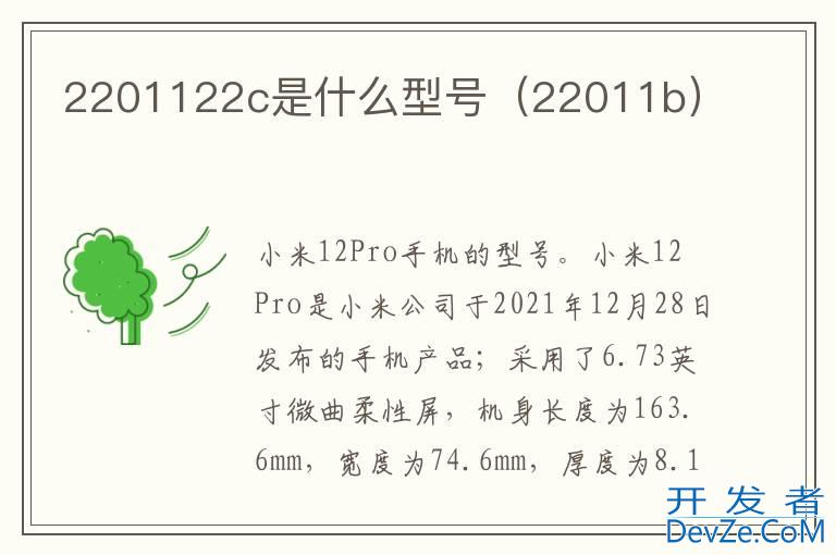 品牌型号:Xiaomi 12 Pro 系统:MIUI 132201122c是小米12 Pro手机的型号。小米12 Pro是小米公司于2021年12月28日发布的手机产品;采用了6.73英寸微曲柔性屏,