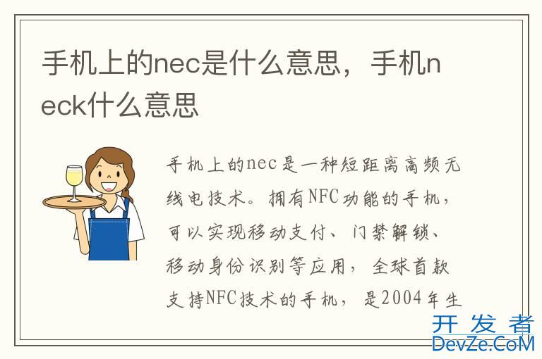 品牌型号:华为 P40 Pro Pro+ 系统:HarmonyOS 3手机上的nec是一种短距离高频无线电技术。拥有NFC功能的手机,可以实现移动支付、门禁解锁、移动身份识别等应用,全球首款支持NFC