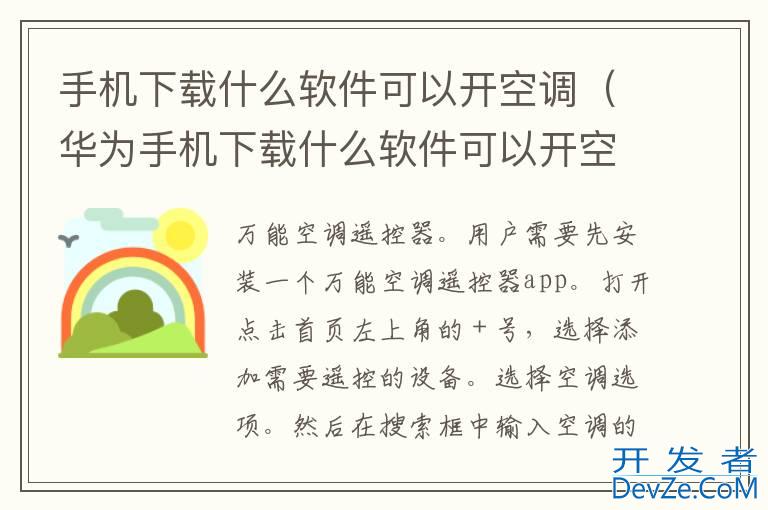品牌型号:华为P50 系统:HarmonyOS3 软件版本:万能空调遥控器12.6开发者_JAVA技巧 手机下载万能空调遥控器就可以开空调。用户需要先安装一个万能空调遥控器app。打开万能