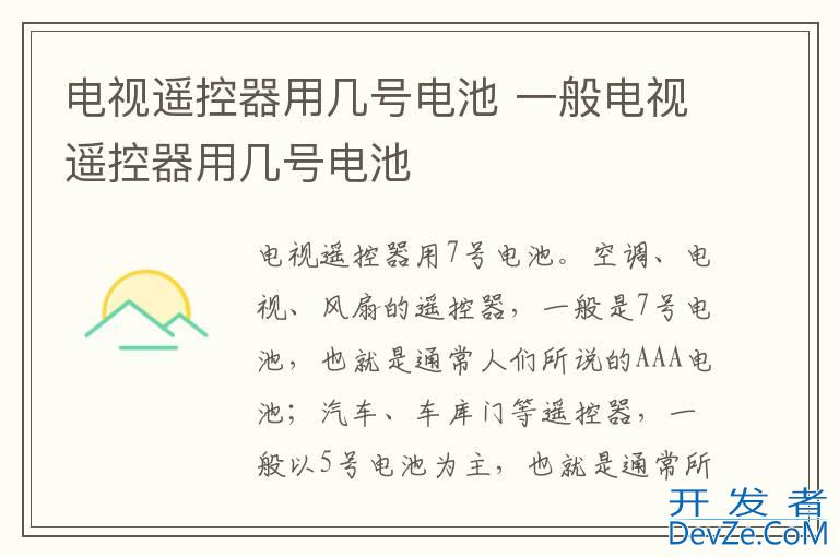 品牌型号:贝石万能电视遥控器 系统:WNDSYKQ-XK-Z开发者_StackOverflow社区 电视遥控器用7号电池。空调、电视、风扇的遥控器,一般是7号电池,也就是