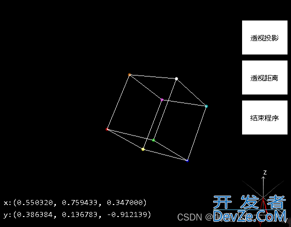 目录程序截图操作方法个人思路代码实现程序截图 操作方法 鼠标拖动。左键拖动及滚轮能看到不同角度下正方体的形状,右键拖动能将最近的正方体顶点挪到这个投影面的相应位置。