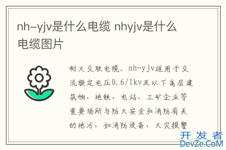 品牌型号:起帆耐火交联电缆 系统:YJV开发者_运维知识库 nh-yjv是耐火交联电缆。nh-yjv适用于交流额定电压0.6/1kv及以下高层建筑物、地铁、电站、工矿企