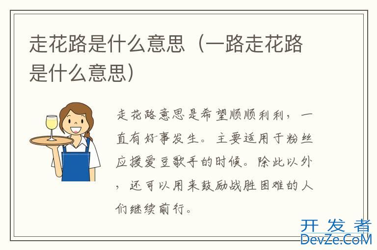 开发者_如何转开发走花路意思是希望顺顺利利,一直有好事发生。主要适用于粉丝应援爱豆歌手的时候。除此以外,还可以用来鼓励战胜困难的人们继续前行。关于“走花路”的来源,有传言是说“花路”这个词是来源于JY