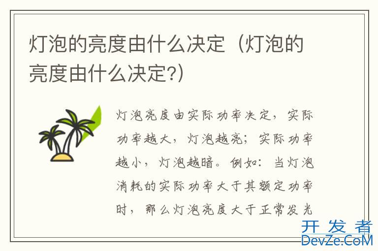 品牌型号:欧普LED灯 系统:E27灯泡亮度由实际功率决定,实际功率越大,灯泡越亮;实际功率越小,灯泡越暗。例如:当灯泡消耗的实际功率大于其额定功率时,那么灯泡亮度大于正常发光时的亮度;当灯泡消耗的实