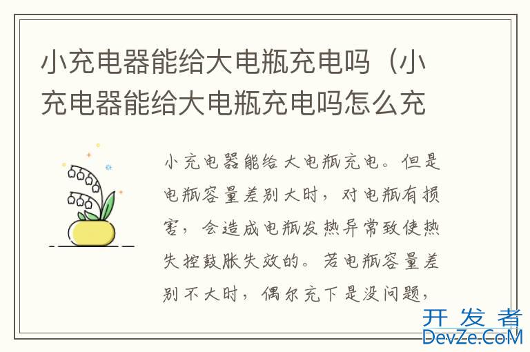 品牌型号:小能人汽车电瓶充电器 系统:R19/R17开发者_运维知识库 小充电器能给大电瓶充电。但是电瓶容量差别大时,对电瓶有损害,会造成电瓶发热异常致使热失控鼓胀失效的。若电瓶容