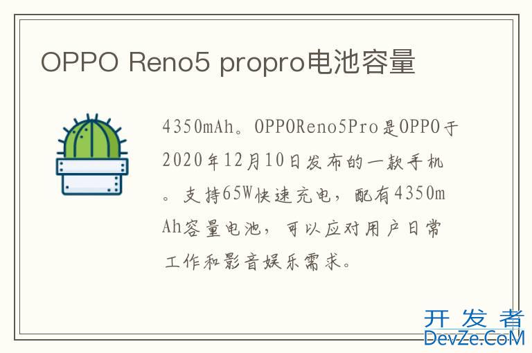 品牌型号:OPPO Reno5 Pro 系统:ColorOS 11.1OPPO Reno5 propro的电池容量为4350mAh。OPPOReno5Pro是OPPO于2020年12月10日发布的一款