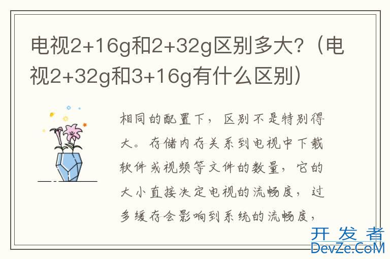 品牌型号:海信电视 系统:75E3F相同的配置下,区别不是特别得大。存储内存关系到电视中下载软件或视频等文件的数量,它的大小直接决定电视的流畅度,过多缓存会影响到系统的流畅度,因而需要定期清理缓存,一
