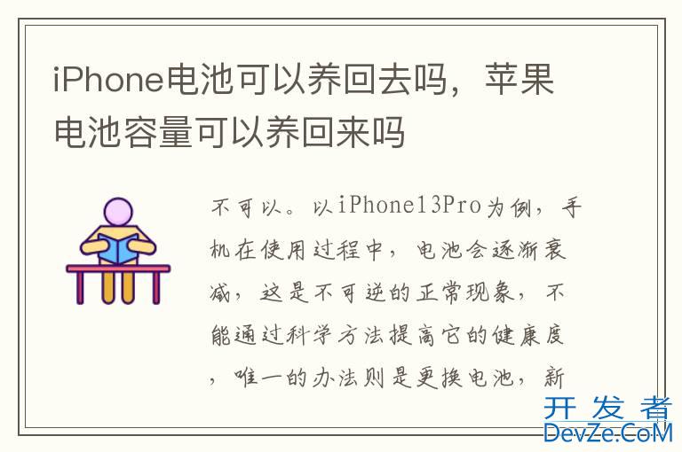 品牌型号:iPhone13 pro pro 系统:iOS 16.0iPhone电池是不可以养回去的。以iPhone13 proPro为例,手机在使用过程中,电池会逐渐衰减,健康度就会降低,这是不可逆的