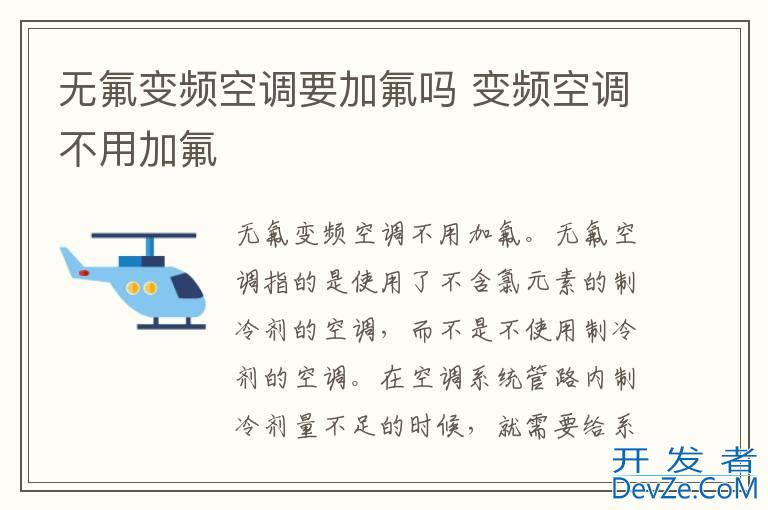 品牌型号:海尔无氟变频空调 系统:KFR-50GW19HDA82U1无氟变频空调不用加氟。无氟空调指的是使用了不含氯元素的制冷剂的空调,而不是不使用制冷剂的空调。在空调系统管路内制冷剂量不足的时候,就