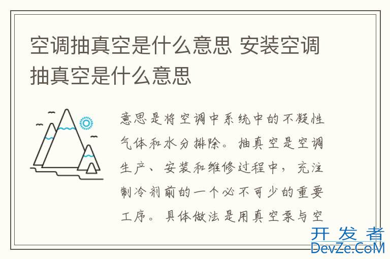 品牌型号:美的空调 系统:KFR-35GW空调抽真空的意思就是将空调中系统中的不凝性气体和水分排除。抽真空是空调生产、安装和维修过程中,充注制冷剂前的一个必不可少的重要工序。具体做法是用真空泵与空调系