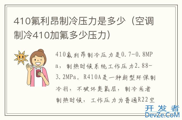 品牌型号:巨化制冷剂 系统:R410A410氟利昂制冷压力是0.7-0.8MPa,制热时候系统工作压力2.88-3.2MPa。R410A是一种新型环保制冷剂,不破坏臭氧层,制冷或者制热时候,工作压力为