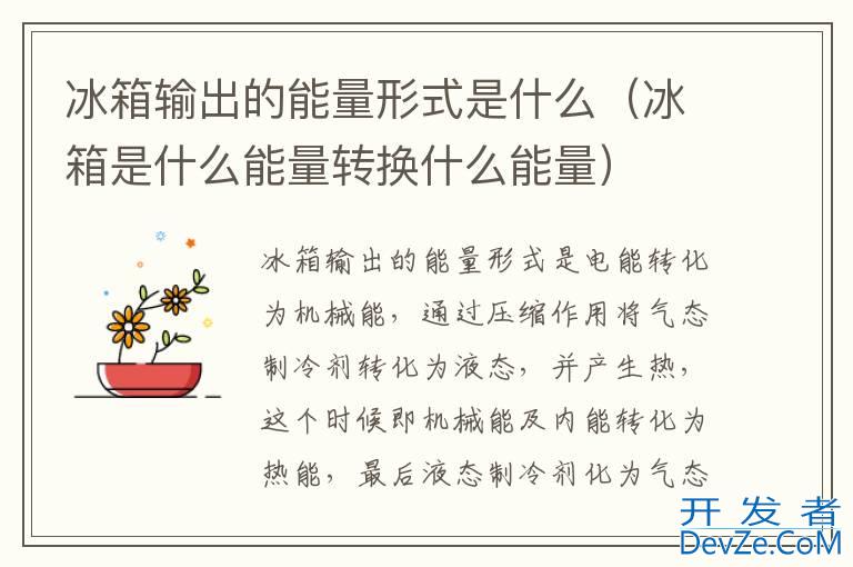 品牌型号:西门子冰箱 系统:BCD-610W(KA92NV60TI)冰箱输出的能量形式是电能转化为机械能,通过压缩作用将气态制冷剂转化为液态,并产生热,这个时候即机械能及内能转开发者_如何学编程化为热