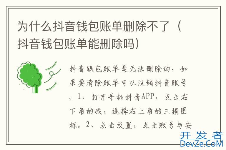 品牌型号:iPhone13 pro 系统:IOS15.4 软件版本:抖音19.9.0以抖音19.9.0为例,抖音钱包账单是无法删除的,如果要清除账单可以注销抖音账号。分为5步,具体步骤如下:1进入抖音