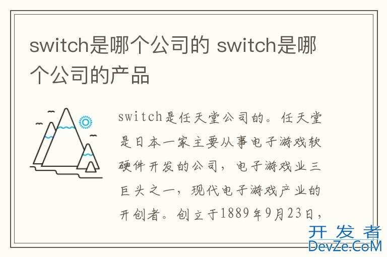 开发者_如何学JAVA 品牌型号:任天堂 系统:Switch NS OLEDswitch是任天堂公司的。任天堂(Nintendo)是日本一家主要从事电子游戏软硬件开发的公司,电子游戏业三巨头之