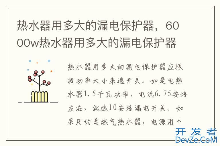 品牌型号:公牛漏电保护断路器 系统:LE-63C63/2/63热水器用多大的漏电保护器应根据功率大小来选开关。如是电热水器1.5千瓦功率,电流6.75安培左右,就选10安培漏电开关。如果用的是燃气热水