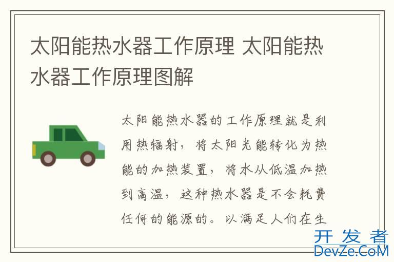 开发者_StackOverflow社区品牌型号:太阳雨太阳能热水器 系统:U-20-155太阳能热水器的工作原理就是利用热辐射,将太阳光能转化为热能的加热装置,将水从低温加热到高温,这种热水器是不会耗