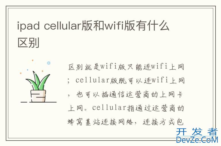品牌型号:Apple iPad air Pro 11 系统:iPad airOS 15.4区别就是wifi版只能连wifi上网;cellular版既可以连wifi上网,也可以插通信运营商的上网卡上网