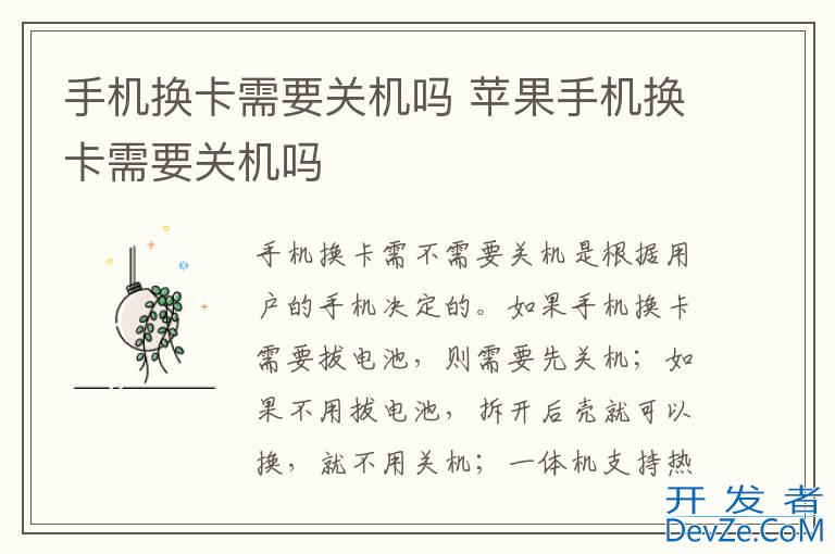 品牌型号:iPhone13 pro pro 系统:iOS 16.0手机换卡需不需要关机是根据用户的手机决定的。如果你的手机换卡需要拔电池,则需要先关机;如果不用拔电池,拆开后壳就可以换,就不用关机;还