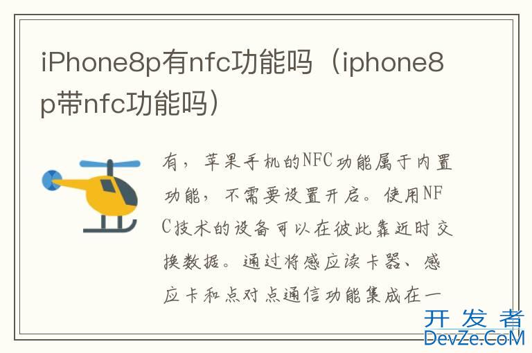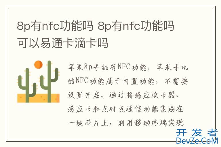 品牌型号:iPhone 8 Pro 系统:iOS 16.0iPhone8p手机有NFC功能,iPhone手机的NFC功能属于内置功能,不需要设置开启。使用NFC技术的设备可以在彼此靠近时交换数据。它是