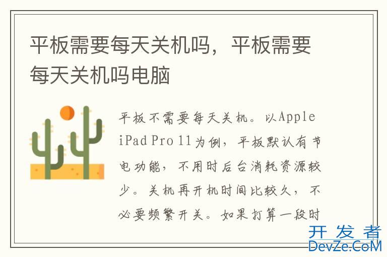品牌型号:Apple iPad ai开发者_运维百科r Pro 11 系统:iPad airOS 15.4平板不需要每天关机。以Apple iPad air Pro 11为例,平板默认有节电功能,不用