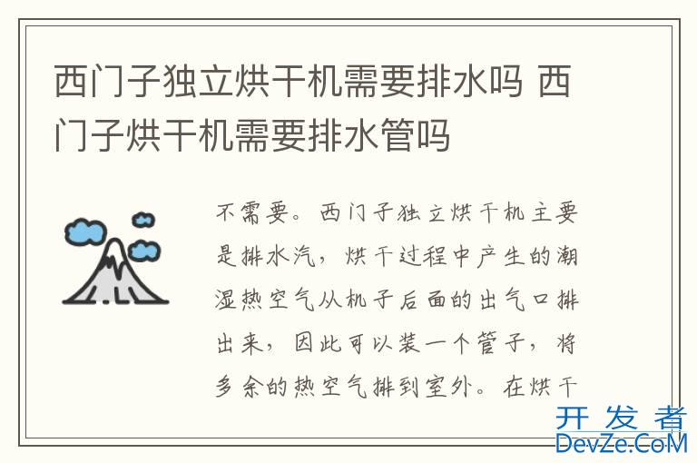 品牌型号:西门子洗衣机 系统:WM12P2692W开发者_开发知识库 不需要。西门子独立烘干机主要是排水汽,烘干过程中产生的潮湿热空气从机子后面的出气口排出来,因此可以装一个管子,