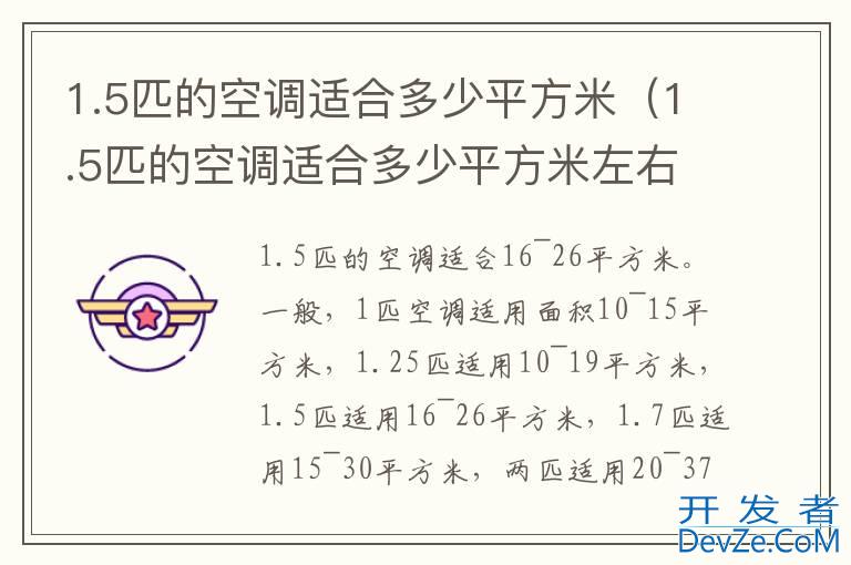 品牌型号:小米空调 系统:KFR-35GW1.5匹的空调适合16~26平方米。一般,1匹空调适用面积10~15平方米,1.25匹适用10~19平方米,1.5匹适用16~26平方米,1.7匹适用15~3