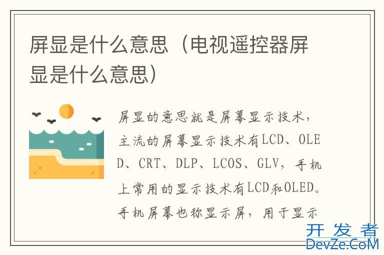 品牌型号:AOC屏幕 系统:27B1屏显的意思就是屏幕显示技术,主流的屏幕显示技术有LCD、OLED、CRT、DLP、LCOS、GLV,手机上常用的显示技术有LCD和OLED。手机屏开发者_开发技巧幕
