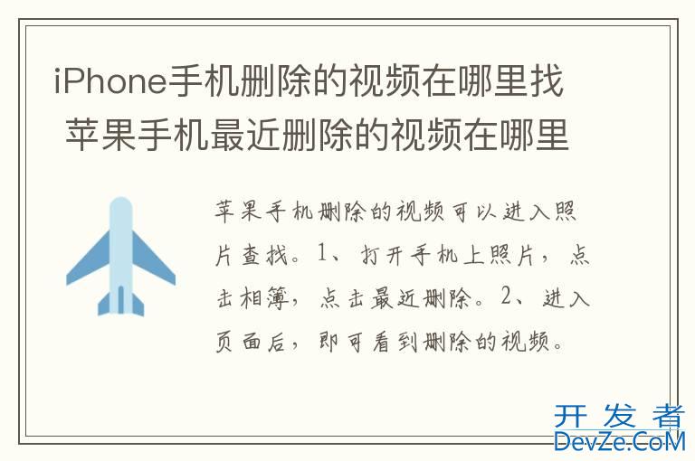 品牌型号:iPhone13 pro 系统:IOS15.4以iPhone13 pro为例,iPhone手机删除的视频可以进入照片查找。分为2步,具体步骤如下:1进入照片相簿最近删除开发者_如何学运维